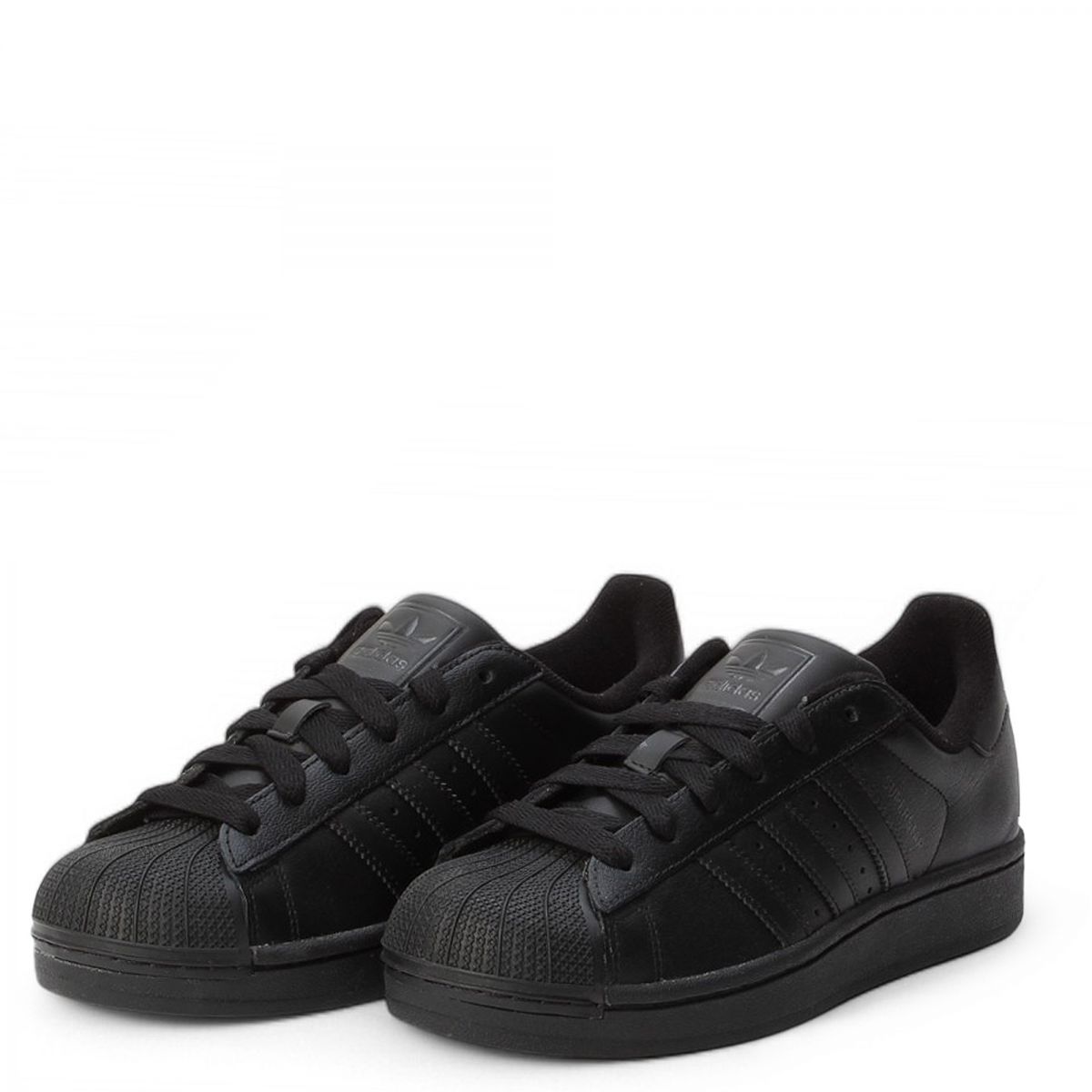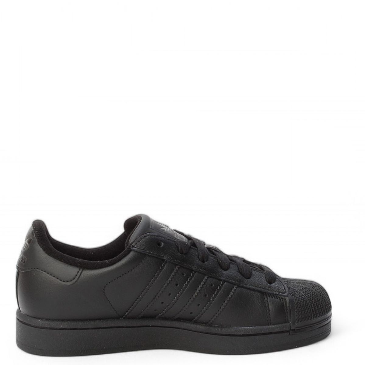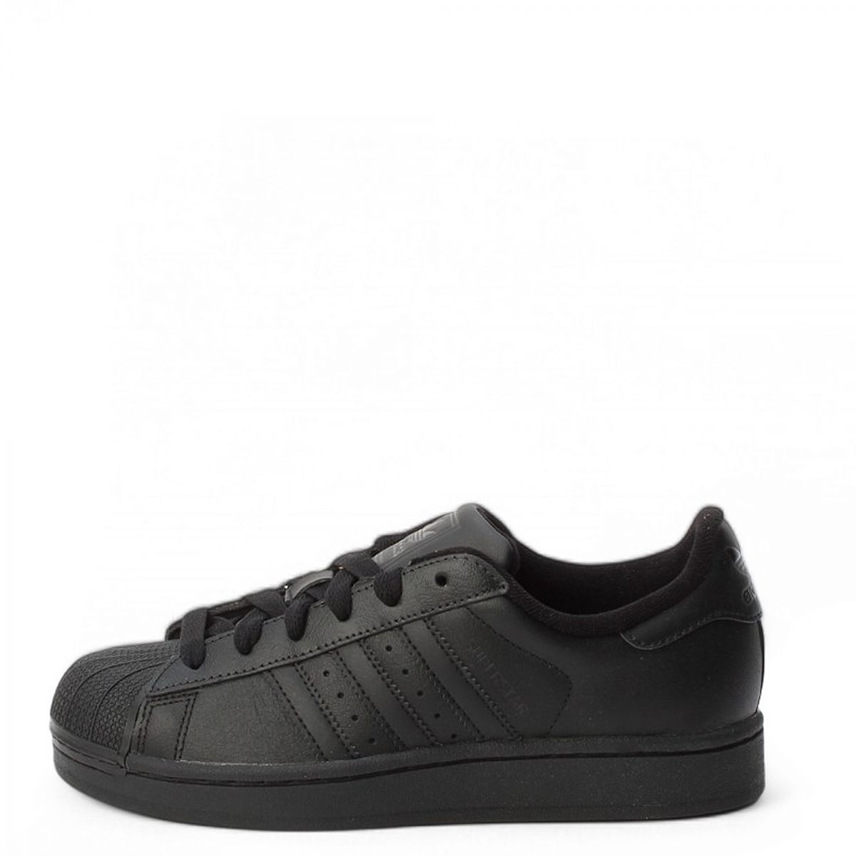 The adidas Superstar II shoes are back and ready to dominate the streets once more. With its iconic shell toe design and serrated 3-Stripes, these shoes have spent over 50 years fusing sport and street style. Revamped in clean, versatile black and white, these juniors' sneakers provide all-day comfort with a molded sockliner and structured leather upper. The stable rubber cupsole with classic herringbone traction pattern keeps you grounded and going in class and style. Wear them with practically anything, from glossy basketball shorts to baggy jeans or cargo pants.