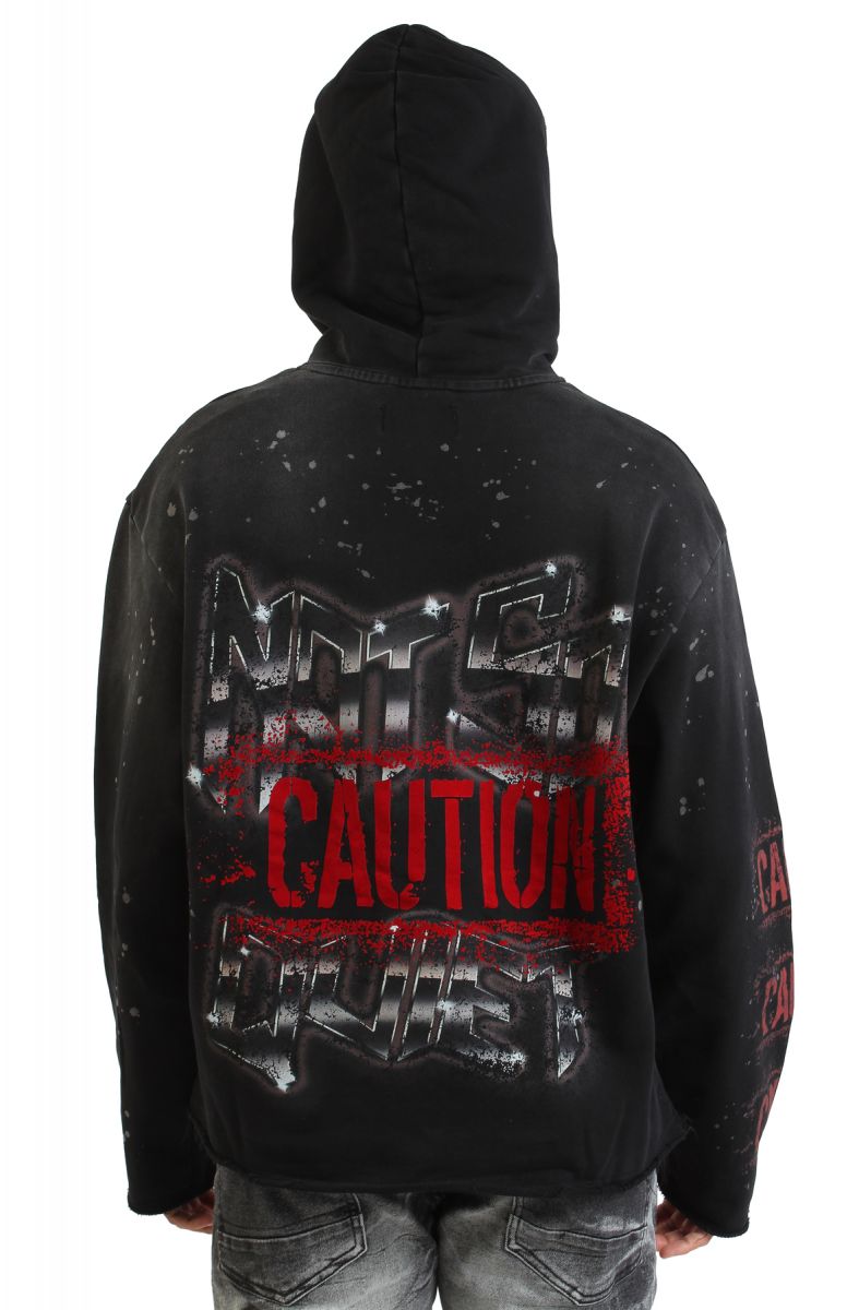 Yo, real talk: This isn't just any **men's graphic hoodie**; it's the FIRST ROW Caution Not So Quiet Ghost Rider Flames Hoodie, ready to ignite your street game.