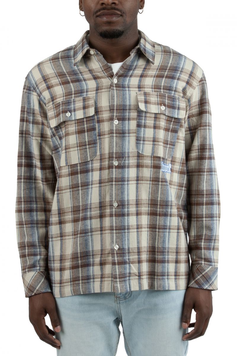 This beige HUF Banks Flannel features a loose fit great to pair up open or button up with any of your favorite pair of jeans.