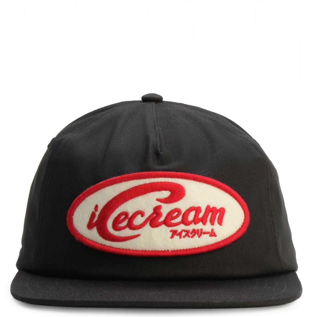 The Big C Snapback from Ice Cream is 100% Cotton, made with an interior mesh panel that gives the A-frame crown a slightly-structured look. The black snapback is branded with a custom wordmark patch on the front.