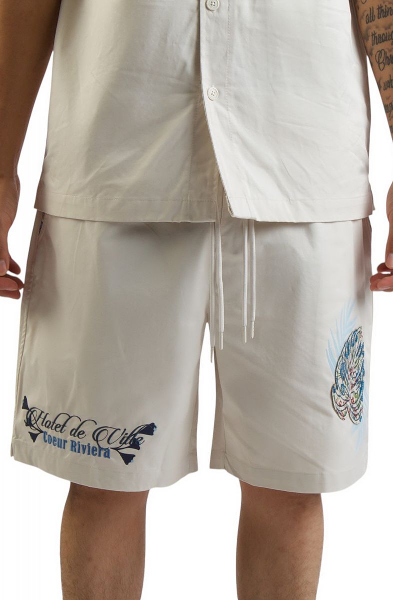 Elevate your summer style with the Beaulieu Short from SMOKE RISE! These lightweight, white drawstring shorts with a 5-inch inseam feature a relaxed fit and wide-leg design, perfect for urban adventures or casual outings.